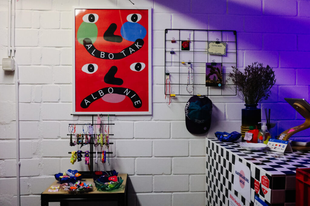 fajny/fajna: Od początku było dla nas ważne, żeby mieć w ofercie nie tylko ubrania vintage, ale także bardziej nowczesne rzeczy i dodatki. Chcieliśmy, żeby każdy kto do nas przychodzi, mógł znaleźć coś dla siebie. Większość towaru bierzemy z hurtowni odzieży używanej. Oferujemy też skup ubrań od naszych klientów (5€ za 1kg). W każdą środę przyjmujemy towar na Kreuzbergu, a w poniedziałki na Neukölln. Sami regularnie odwiedzamy berlińskie pchlie targi, na których zawsze można znaleźć coś ciekawego – szczególnie dodatki do domu, takie jak szkło czy ceramika. Wyróżniają nas także własnoręcznie robione bransoletki, pierścionki i naszywki na ubrania.