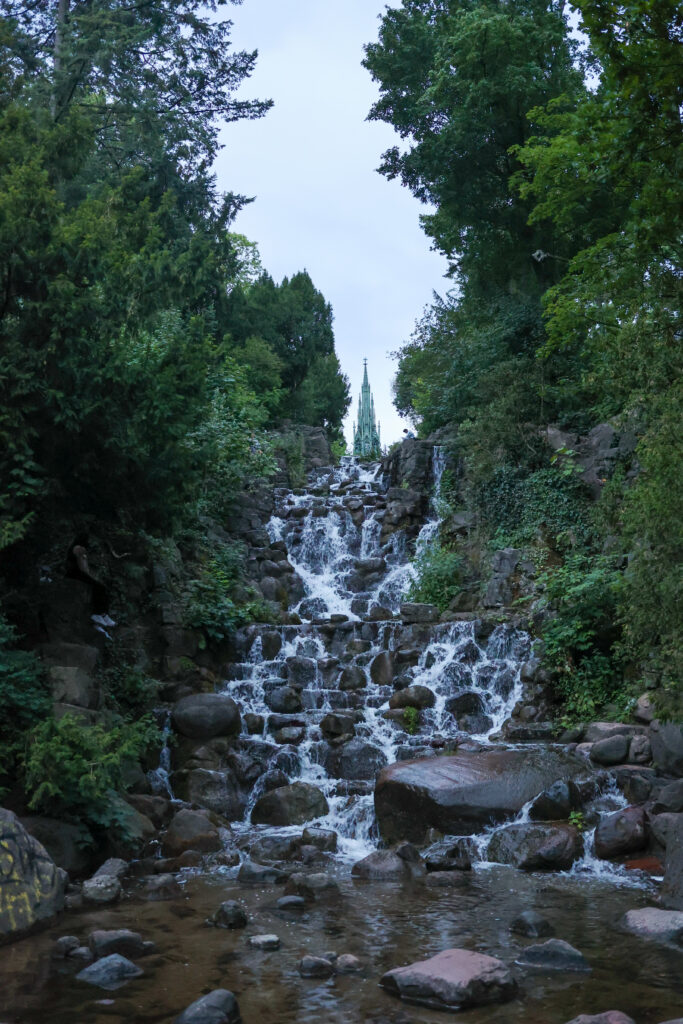 Romantyczne wzgórze z wodospadem i pomnikiem – piękny widok na Kreuzberg i centrum miasta. W parku znajduje się ogródek piwny Golgatha.