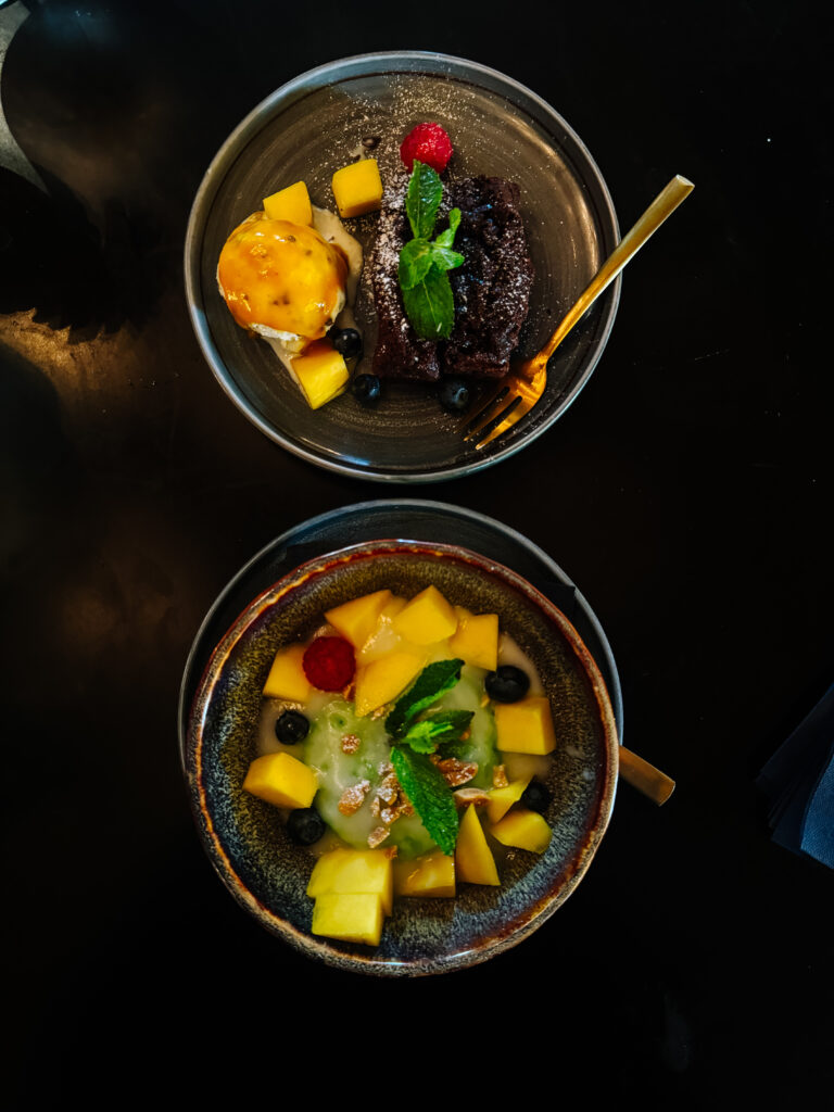 Jeżeli chodzi o porcje, to moim zdaniem są idealnego rozmiaru – nie za duże i nie za małe. Dzięki temu można spokojnie zamówić przystawkę, danie główne i deser bez obawy o brak miejsca w żołądku. Zachęca do tego menu główne, którego już same zdjęcia potraw sprawiają, że chce się spróbować wszystkiego. Ciekawym rozwiązaniem w tym przypadku są talerzyki do podziału. Oprócz tego, oferta lunchowa zmienia się co tydzień i zawiera „highlights” szefa kuchni, a autorskie drinki i domowe lemoniady skutecznie zaspokajają pragnienie.
